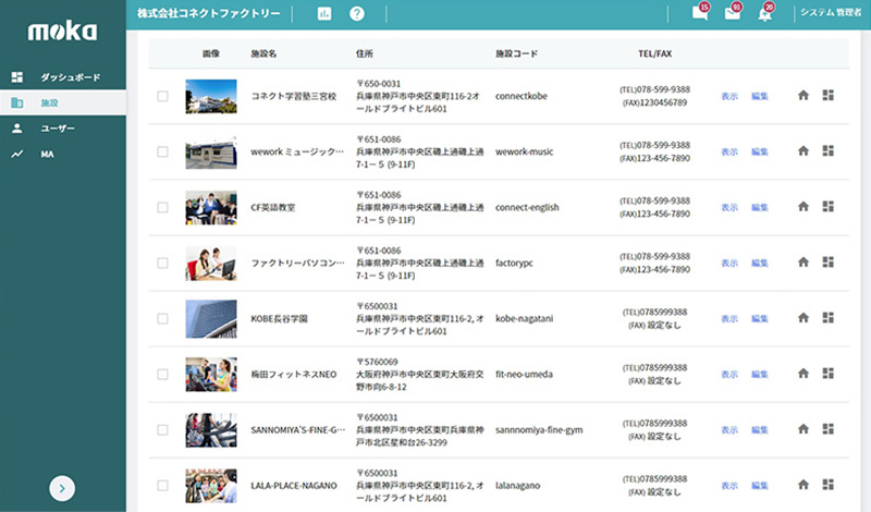 各施設・サービスごとのWebサイトを自動生成、Web用の管理画面も各施設専用に生成されるので各施設のスタッフがKお知らせ更新など運営をすることが可能です。