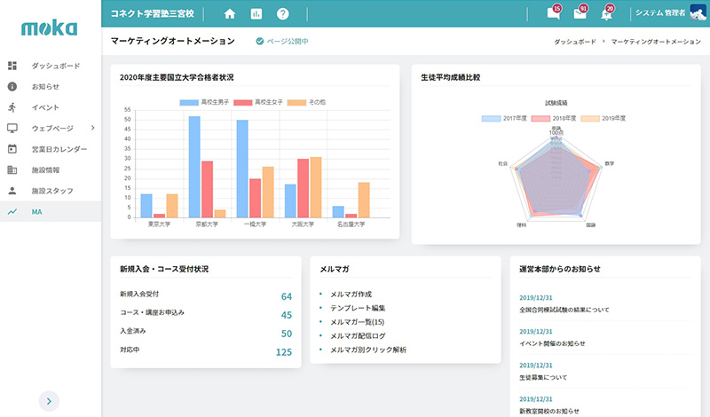 実績データの解析からのマーケティングの提案、メルマガ配信などの見込み顧客へのアプローチ成約率など既存顧客へのマーケティング、新規生徒の開拓をパワフルサポート!