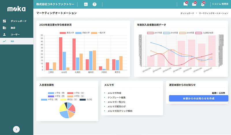 実績データの解析からのマーケティングの提案、メルマガ配信などの見込み顧客へのアプローチ成約率など既存顧客へのマーケティング、新規生徒の開拓をパワフルサポート!